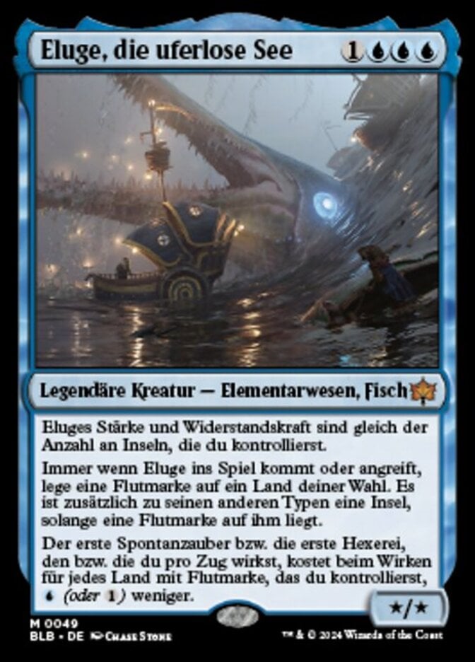 | Rules | Eluge's power and toughness are each equal to the number of Islands you control. Whenever Eluge enters or attacks, put a flood counter on target land. It's an Island in addition to its other types for as long as it has a flood counter on it. The first instant or sorcery spell you cast each turn costs (or ) less to cast for each land you control with a flood counter on it. |