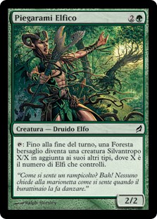Rules : Until end of turn, target Forest becomes an X/X Treefolk creature in addition to its other types, where X is the number of Elves you control.