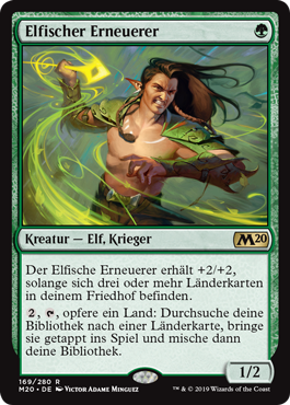 | Rules | Elvish Reclaimer gets +2/+2 as long as there are three or more land cards in your graveyard. , , Sacrifice a land: Search your library for a land card, put it onto the battlefield tapped, then shuffle. |