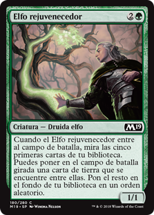 | Rules | When Elvish Rejuvenator enters the battlefield, look at the top five cards of your library. You may put a land card from among them onto the battlefield tapped. Put the rest on the bottom of your library in a random order. |