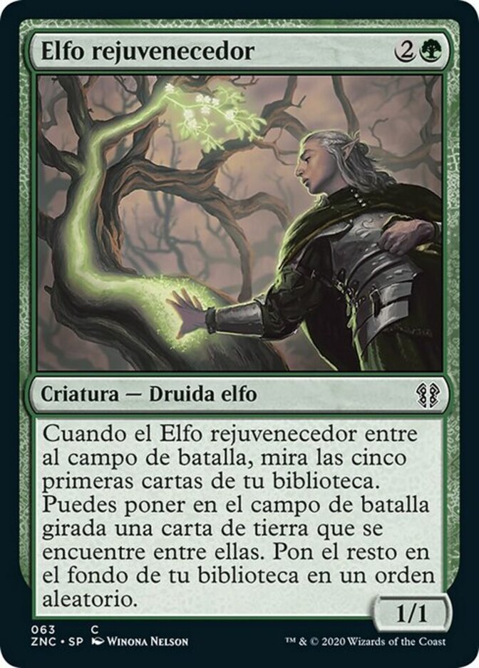 | Rules | When Elvish Rejuvenator enters the battlefield, look at the top five cards of your library. You may put a land card from among them onto the battlefield tapped. Put the rest on the bottom of your library in a random order. |