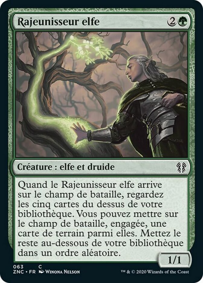 | Rules | When Elvish Rejuvenator enters the battlefield, look at the top five cards of your library. You may put a land card from among them onto the battlefield tapped. Put the rest on the bottom of your library in a random order. |