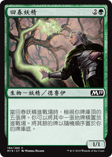 | Rules | When Elvish Rejuvenator enters the battlefield, look at the top five cards of your library. You may put a land card from among them onto the battlefield tapped. Put the rest on the bottom of your library in a random order. |