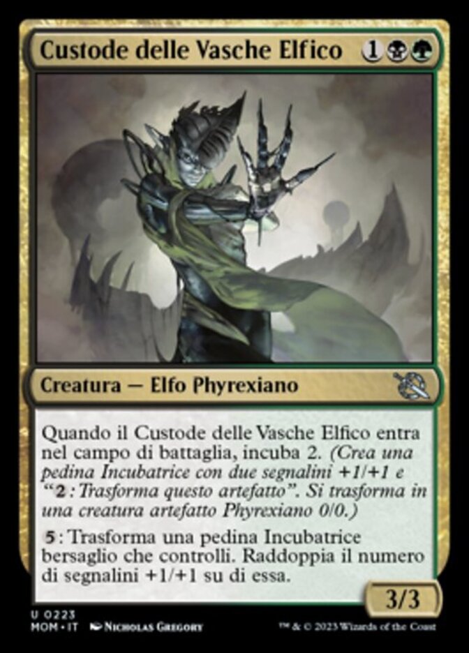 | Rules | When Elvish Vatkeeper enters the battlefield, incubate 2. (Create an Incubator token with two +1/+1 counters on it and ": Transform this artifact." It transforms into a 0/0 Phyrexian artifact creature.) : Transform target Incubator token you control. Double the number of +1/+1 counters on it. |