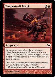 | Rules | Creatures target player controls can't block this turn. Ember Gale deals 1 damage to each white and/or blue creature that player controls. |