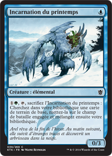 | Rules | , , Sacrifice Embodiment of Spring: Search your library for a basic land card, put it onto the battlefield tapped, then shuffle. |