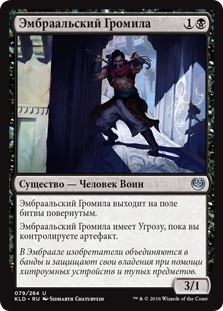 | Rules | Embraal Bruiser enters the battlefield tapped. Embraal Bruiser has menace as long as you control an artifact. |