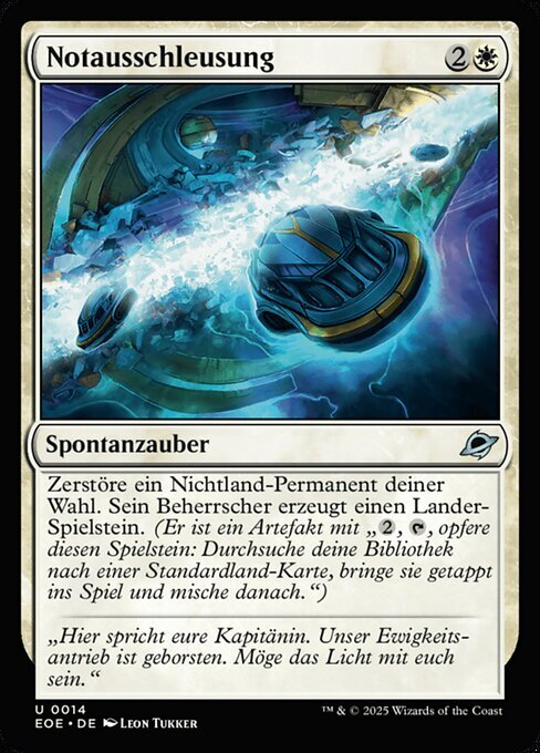 | Rules | Destroy target nonland permanent. Its controller creates a Lander token. (It's an artifact with ", , Sacrifice this token: Search your library for a basic land card, put it onto the battlefield tapped, then shuffle.") |