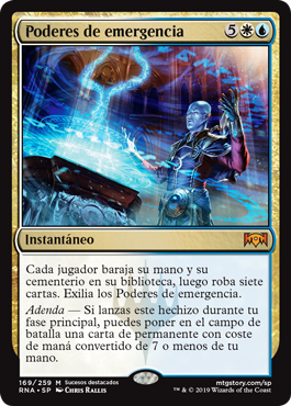 | Rules | Each player shuffles their hand and graveyard into their library, then draws seven cards. Exile Emergency Powers. Addendum — If you cast this spell during your main phase, you may put a permanent card with mana value 7 or less from your hand onto the battlefield. |