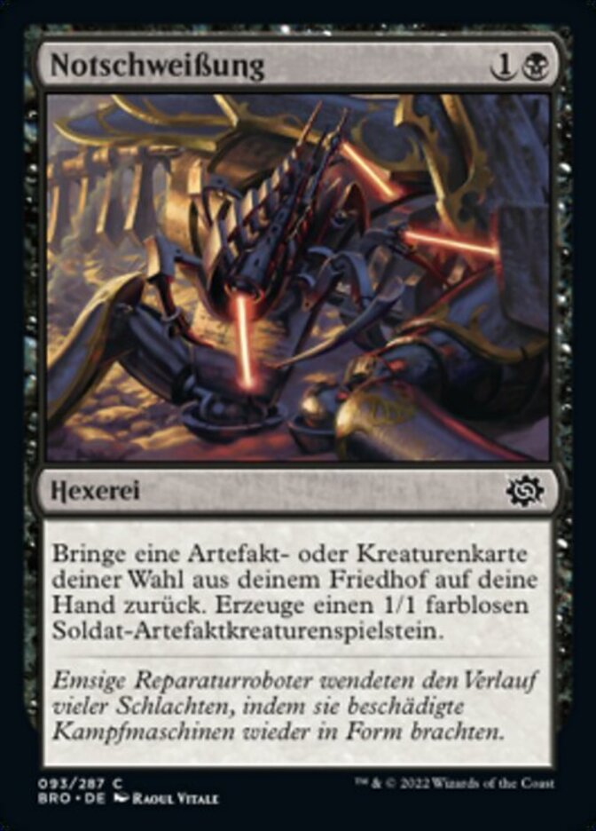 | Rules | Return target artifact or creature card from your graveyard to your hand. Create a 1/1 colorless Soldier artifact creature token. |