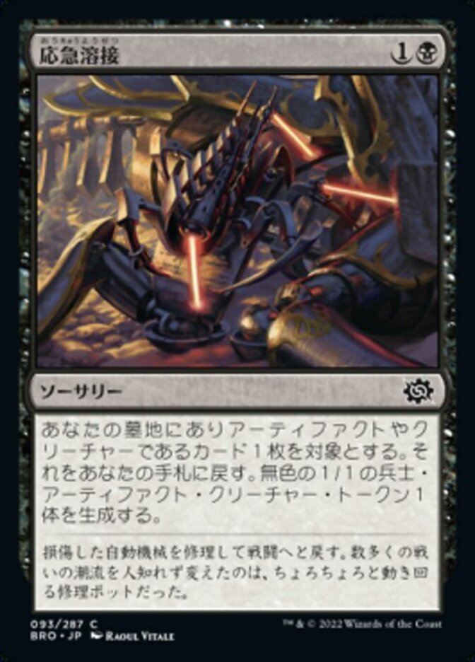 | Rules | Return target artifact or creature card from your graveyard to your hand. Create a 1/1 colorless Soldier artifact creature token. |