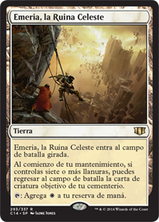 | Rules | Emeria, the Sky Ruin enters the battlefield tapped. At the beginning of your upkeep, if you control seven or more Plains, you may return target creature card from your graveyard to the battlefield. : Add . |