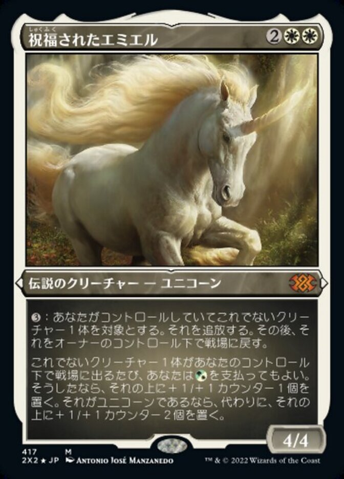 | Rules | : Exile another target creature you control, then return it to the battlefield under its owner's control. Whenever another creature enters the battlefield under your control, you may pay . If you do, put a +1/+1 counter on it. If it's a Unicorn, put two +1/+1 counters on it instead. ( can be paid with either or .) |