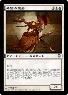 Whenever Emissary of Hope deals combat damage to a player, you gain 1 life for each artifact that player controls.
