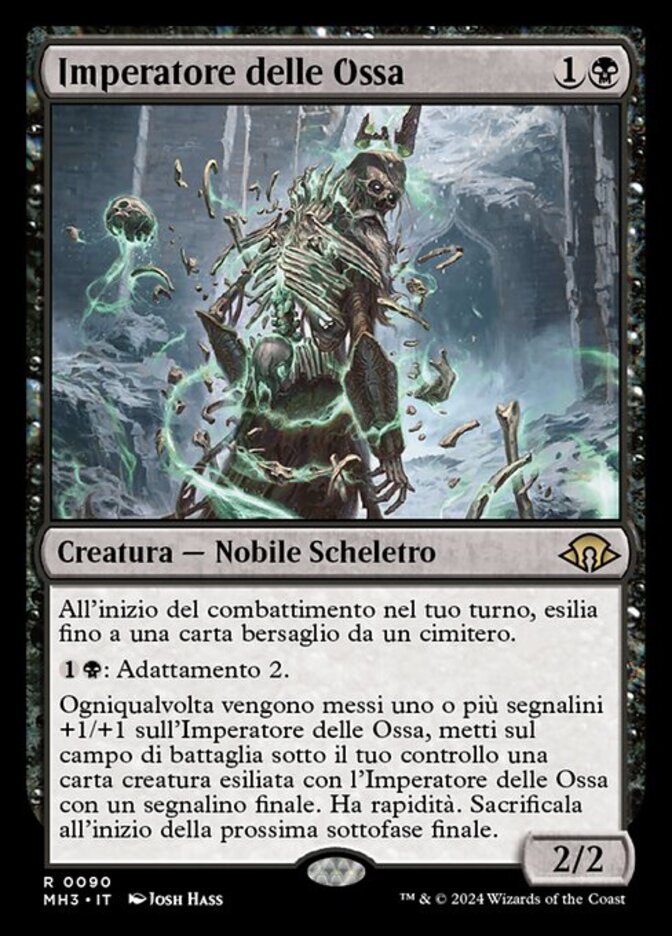 | Rules | At the beginning of combat on your turn, exile up to one target card from a graveyard. : Adapt 2. Whenever one or more +1/+1 counters are put on Emperor of Bones, put a creature card exiled with Emperor of Bones onto the battlefield under your control with a finality counter on it. It gains haste. Sacrifice it at the beginning of the next end step. |