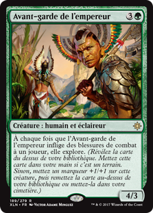 | Rules | Whenever Emperor's Vanguard deals combat damage to a player, it explores. (Reveal the top card of your library. Put that card into your hand if it's a land. Otherwise, put a +1/+1 counter on this creature, then put the card back or put it into your graveyard.) |
