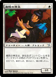 | Rules | Empty-Shrine Kannushi has protection from the colors of permanents you control. |