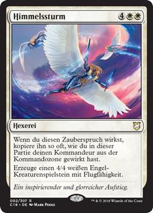 | Rules | When you cast this spell, copy it for each time you've cast your commander from the command zone this game. Create a 4/4 white Angel creature token with flying. |