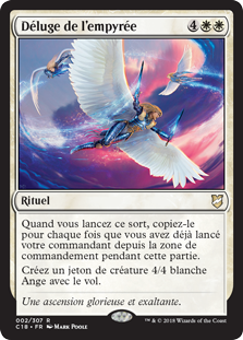 | Rules | When you cast this spell, copy it for each time you've cast your commander from the command zone this game. Create a 4/4 white Angel creature token with flying. |