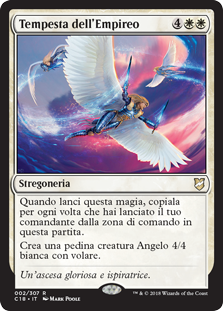 | Rules | When you cast this spell, copy it for each time you've cast your commander from the command zone this game. Create a 4/4 white Angel creature token with flying. |