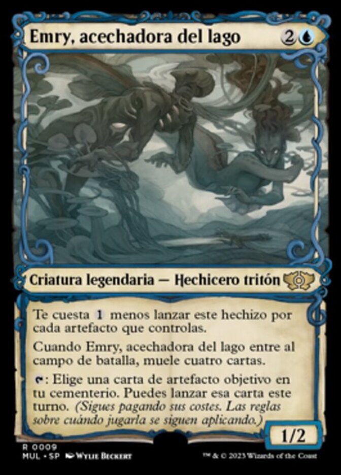 | Rules | This spell costs less to cast for each artifact you control. When Emry, Lurker of the Loch enters the battlefield, mill four cards. : Choose target artifact card in your graveyard. You may cast that card this turn. (You still pay its costs. Timing rules still apply.) |