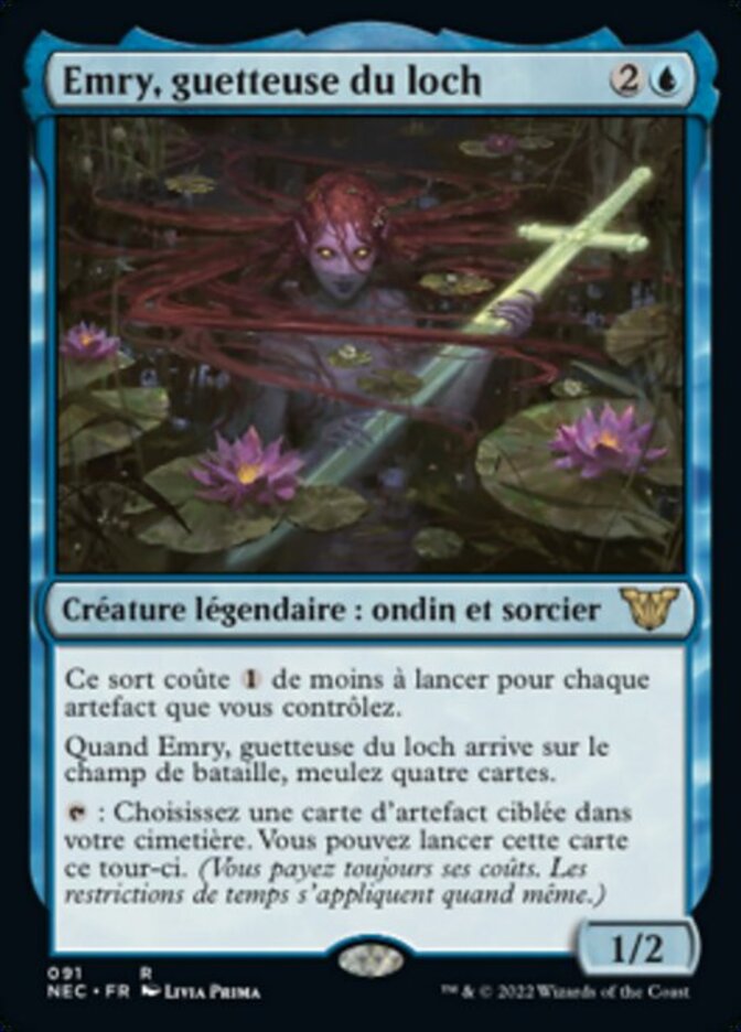| Rules | This spell costs less to cast for each artifact you control. When Emry, Lurker of the Loch enters the battlefield, mill four cards. : Choose target artifact card in your graveyard. You may cast that card this turn. (You still pay its costs. Timing rules still apply.) |