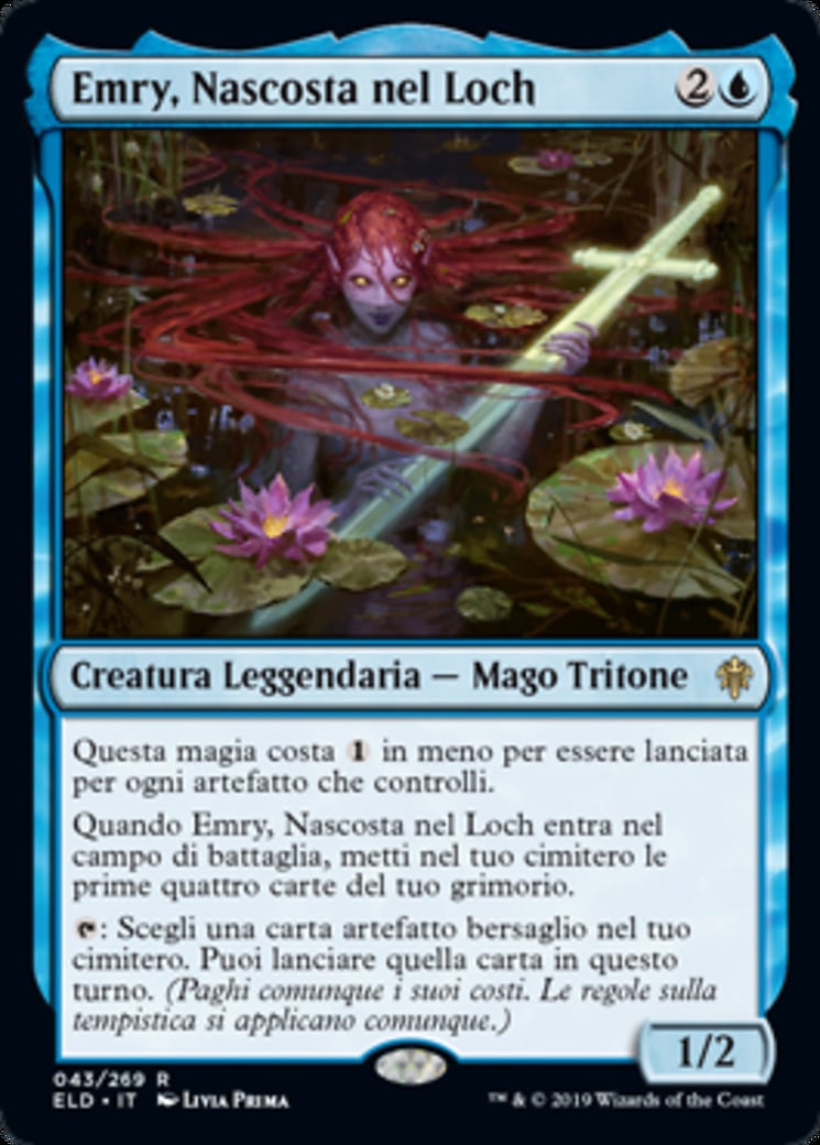 | Rules | This spell costs less to cast for each artifact you control. When Emry, Lurker of the Loch enters the battlefield, mill four cards. : Choose target artifact card in your graveyard. You may cast that card this turn. (You still pay its costs. Timing rules still apply.) |