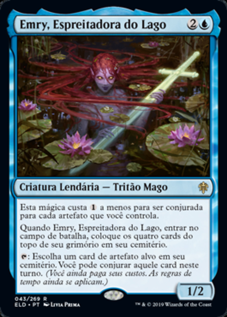 | Rules | This spell costs less to cast for each artifact you control. When Emry, Lurker of the Loch enters the battlefield, mill four cards. : Choose target artifact card in your graveyard. You may cast that card this turn. (You still pay its costs. Timing rules still apply.) |