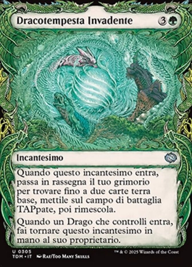 | Rules | When this enchantment enters, search your library for up to two basic land cards, put them onto the battlefield tapped, then shuffle. When a Dragon you control enters, return this enchantment to its owner's hand. |