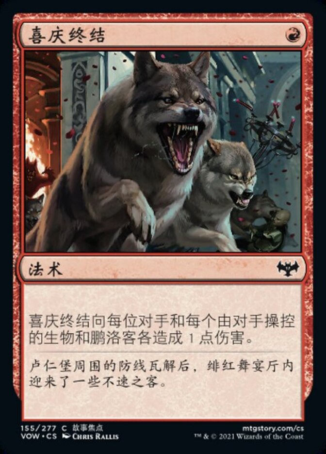 | Rules | End the Festivities deals 1 damage to each opponent and each creature and planeswalker they control. |
