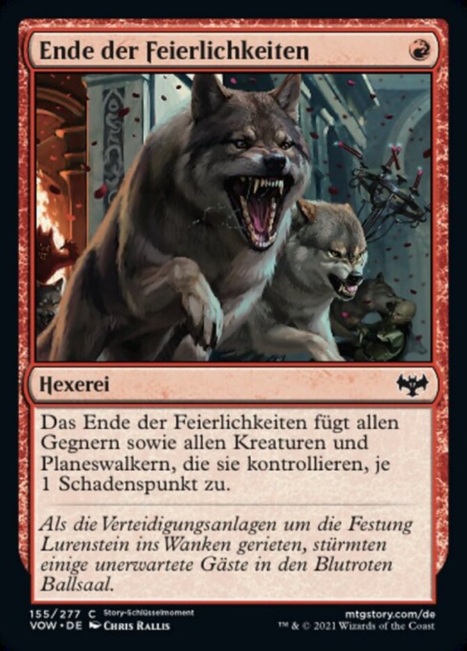 | Rules | End the Festivities deals 1 damage to each opponent and each creature and planeswalker they control. |