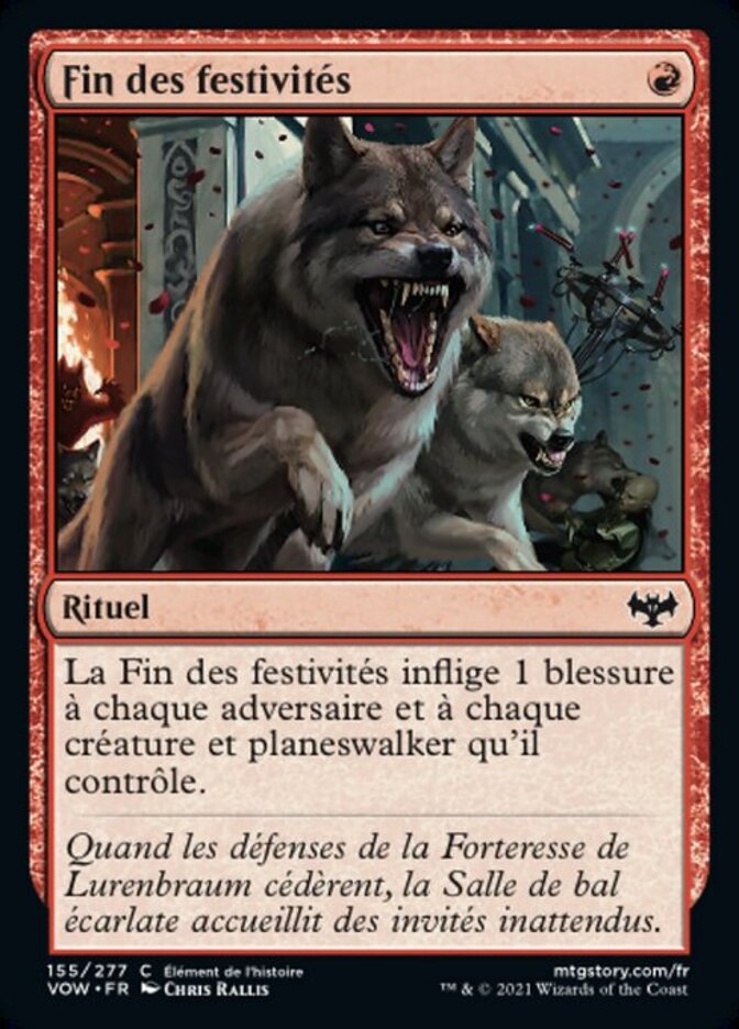 | Rules | End the Festivities deals 1 damage to each opponent and each creature and planeswalker they control. |