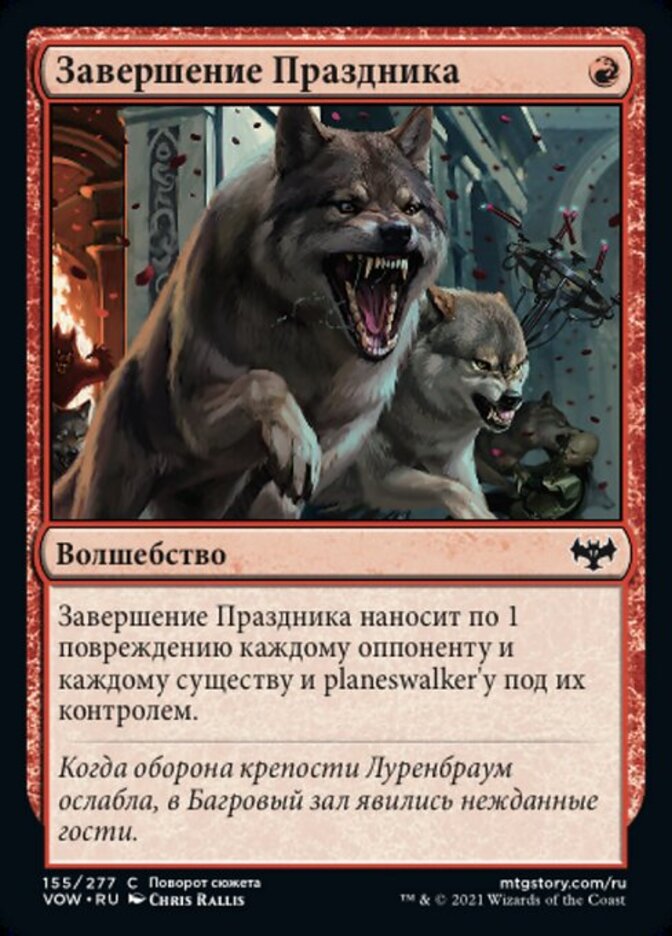 | Rules | End the Festivities deals 1 damage to each opponent and each creature and planeswalker they control. |