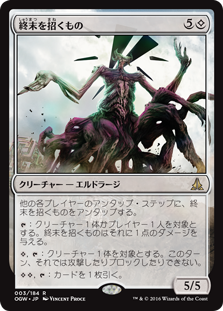 | Rules | Untap Endbringer during each other player's untap step. : Endbringer deals 1 damage to any target. , : Target creature can't attack or block this turn. , : Draw a card. |