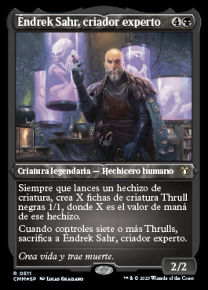 | Rules | Whenever you cast a creature spell, create X 1/1 black Thrull creature tokens, where X is that spell's mana value. When you control seven or more Thrulls, sacrifice Endrek Sahr, Master Breeder. |