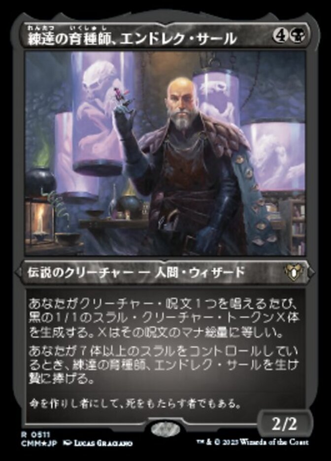 | Rules | Whenever you cast a creature spell, create X 1/1 black Thrull creature tokens, where X is that spell's mana value. When you control seven or more Thrulls, sacrifice Endrek Sahr, Master Breeder. |