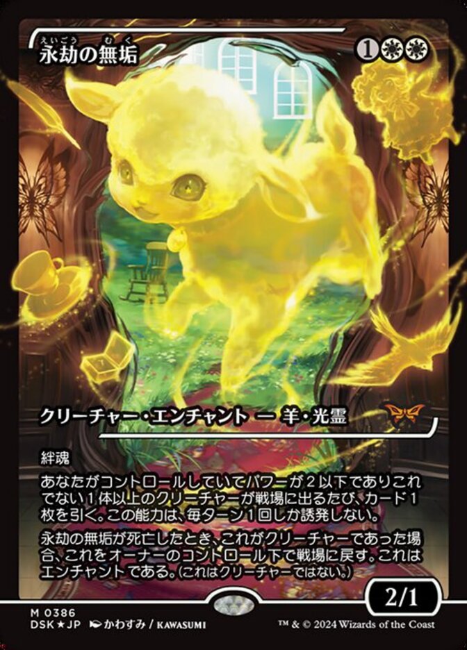 | Rules | Lifelink Whenever one or more other creatures you control with power 2 or less enter, draw a card. This ability triggers only once each turn. When Enduring Innocence dies, if it was a creature, return it to the battlefield under its owner's control. It's an enchantment. (It's not a creature.) |