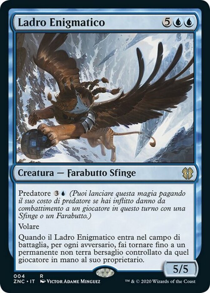 | Rules | Prowl (You may cast this spell for its prowl cost if you dealt combat damage to a player this turn with a Sphinx or Rogue.) Flying When Enigma Thief enters the battlefield, for each opponent, return up to one target nonland permanent that player controls to its owner's hand. |