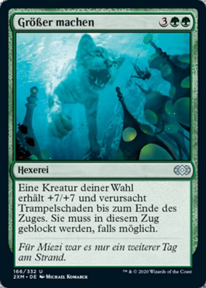 | Rules | Target creature gets +7/+7 and gains trample until end of turn. It must be blocked this turn if able. (A creature with trample can deal excess combat damage to the player or planeswalker it's attacking.) |