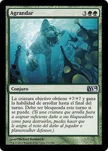| Rules | Target creature gets +7/+7 and gains trample until end of turn. It must be blocked this turn if able. (A creature with trample can deal excess combat damage to the player or planeswalker it's attacking.) |