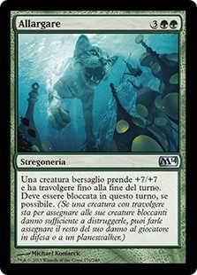 | Rules | Target creature gets +7/+7 and gains trample until end of turn. It must be blocked this turn if able. (A creature with trample can deal excess combat damage to the player or planeswalker it's attacking.) |