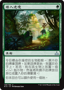 | Rules | Target creature you control explores. (Reveal the top card of your library. Put that card into your hand if it's a land. Otherwise, put a +1/+1 counter on the creature, then put the card back or put it into your graveyard.) You may play an additional land this turn. |