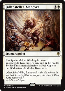 | Rules | Target player sacrifices an attacking creature. You create X 1/1 white Soldier creature tokens, where X is that creature's toughness. |