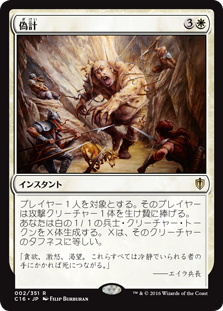 | Rules | Target player sacrifices an attacking creature. You create X 1/1 white Soldier creature tokens, where X is that creature's toughness. |