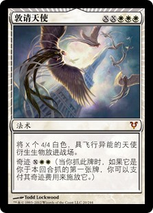 | Rules | Create X 4/4 white Angel creature tokens with flying. Miracle (You may cast this card for its miracle cost when you draw it if it's the first card you drew this turn.) |