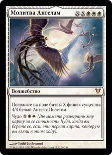 | Rules | Create X 4/4 white Angel creature tokens with flying. Miracle (You may cast this card for its miracle cost when you draw it if it's the first card you drew this turn.) |