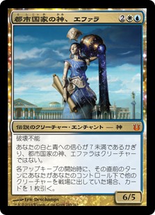 | Rules | Indestructible As long as your devotion to white and blue is less than seven, Ephara isn't a creature. At the beginning of each upkeep, if you had another creature enter the battlefield under your control last turn, draw a card. |