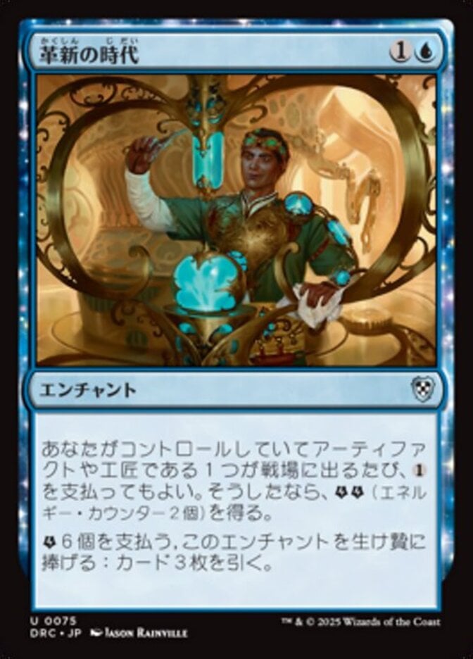 | Rules | Whenever an artifact or Artificer enters the battlefield under your control, you may pay . If you do, you get (two energy counters). Pay , Sacrifice Era of Innovation: Draw three cards. |