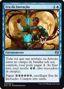 | Rules | Whenever an artifact or Artificer enters the battlefield under your control, you may pay . If you do, you get (two energy counters). Pay , Sacrifice Era of Innovation: Draw three cards. |
