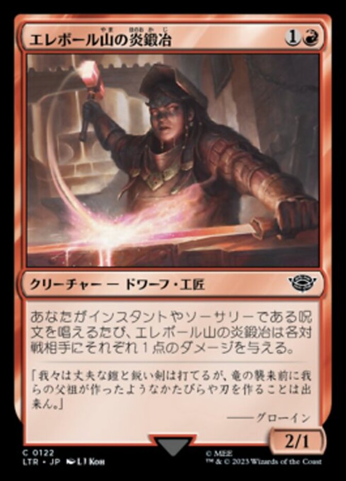 | Rules | Whenever you cast an instant or sorcery spell, Erebor Flamesmith deals 1 damage to each opponent. |